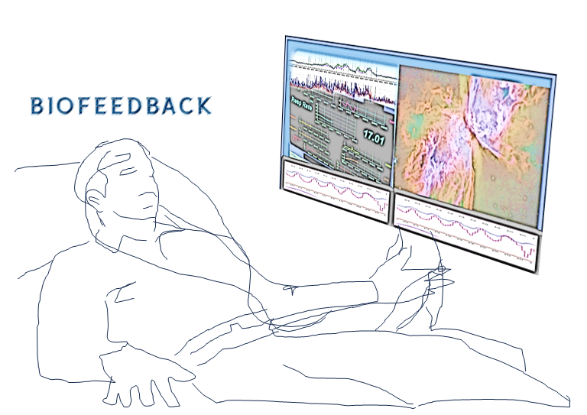 Biofeedback is a mind-body therapy that has the ability to reveal changes in stress levels by using advanced instruments to display fluctuations in body systems that are activated by stress. Awareness of elevated stress levels can guide a skillful clinician to facilitate the shift to more relaxed states.